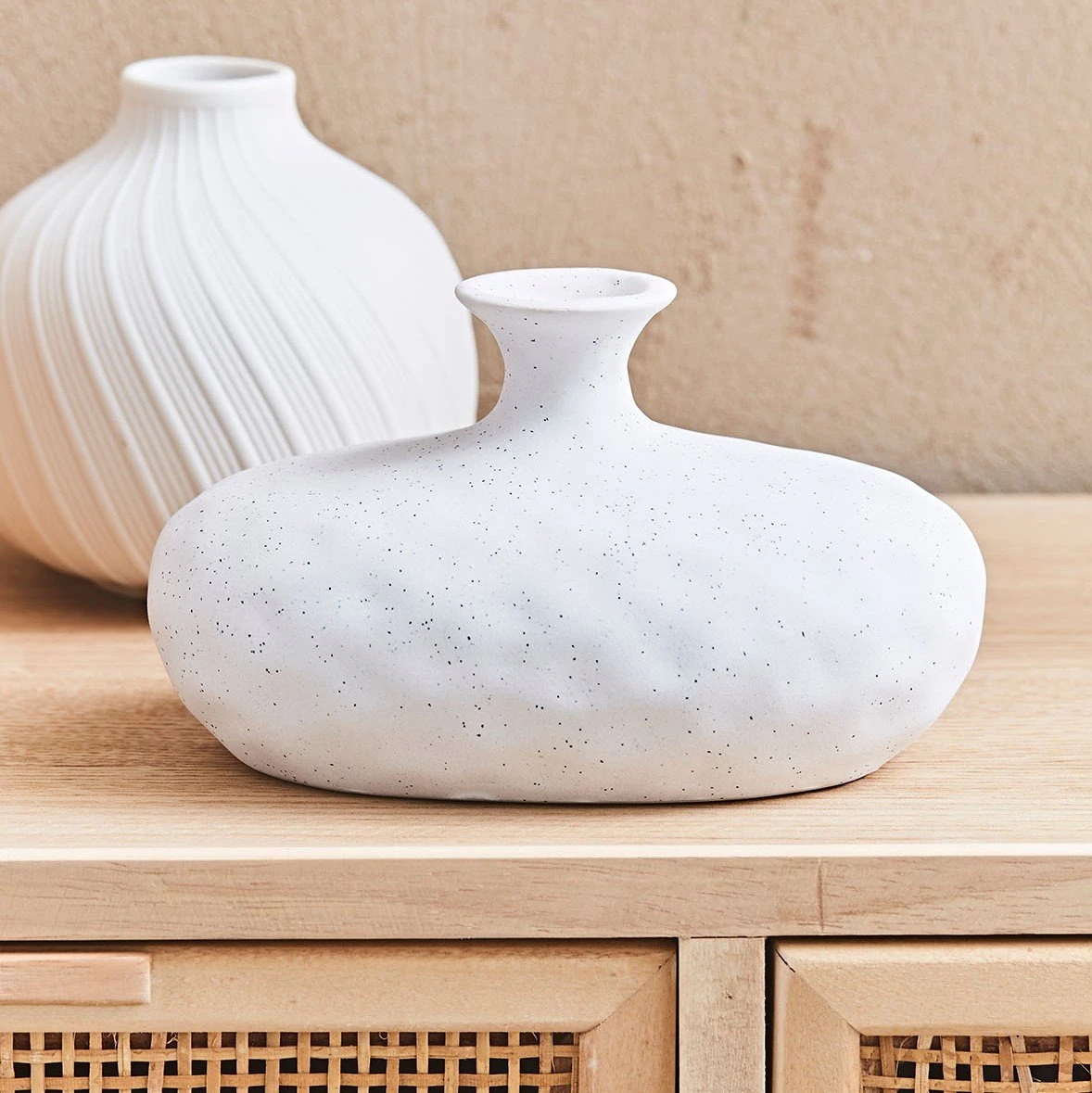 Vase décoratif rond en porcelaine rainurée aspect mat